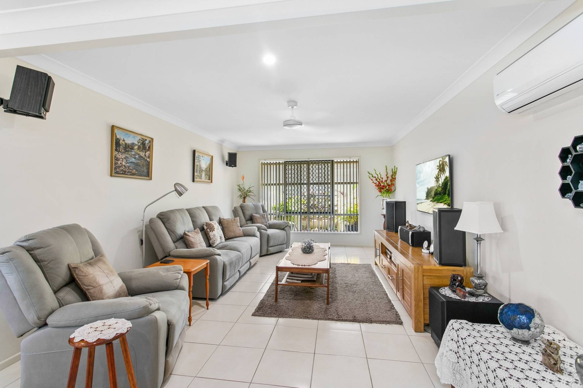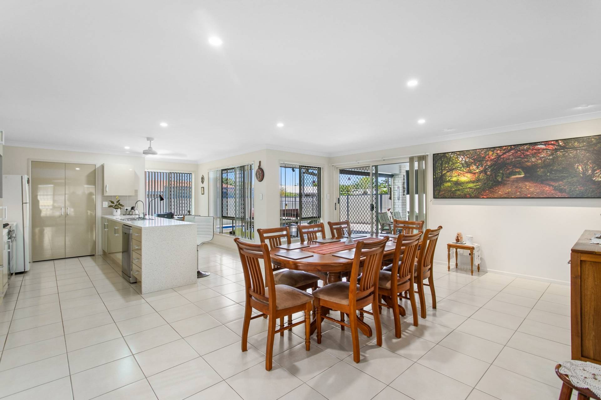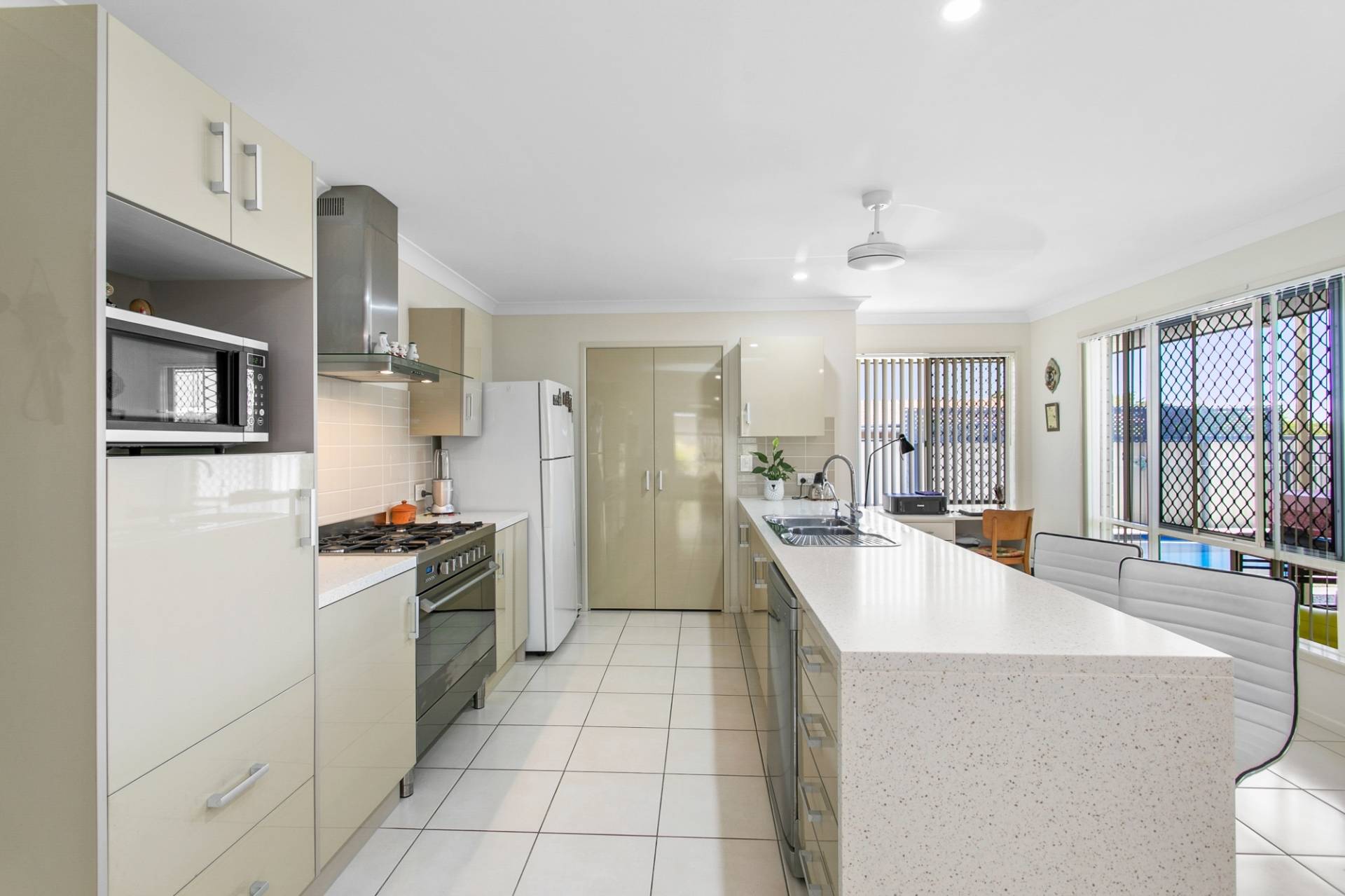 Find two large living spaces, a rumpus for the kids with ample space for a full sized pool table or turn this space into a media room. The large air-conditioned open plan living, dining and kitchen flow seamlessly and look out to the covered alfresco entertaining area, complete with outdoor TV and sparkling inground pool.