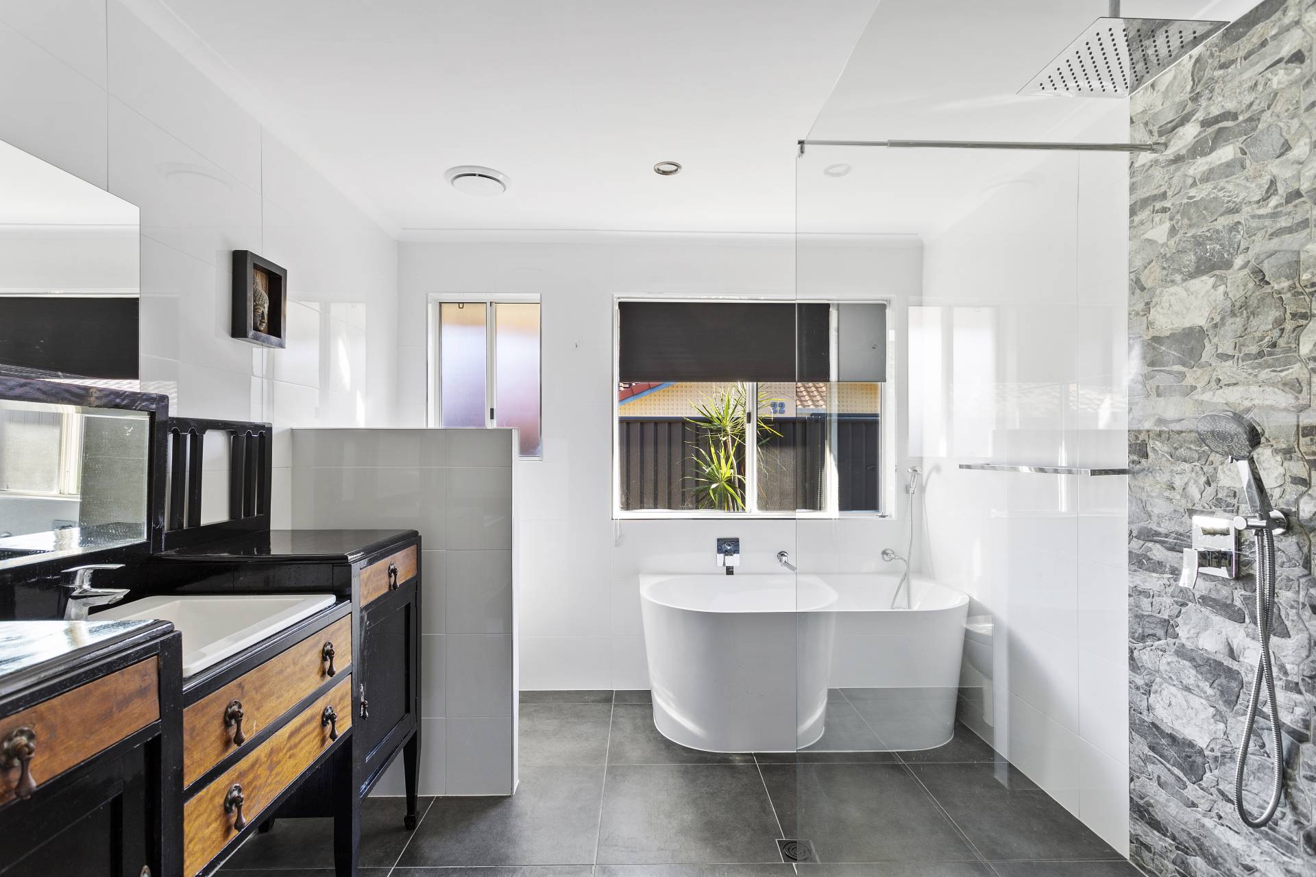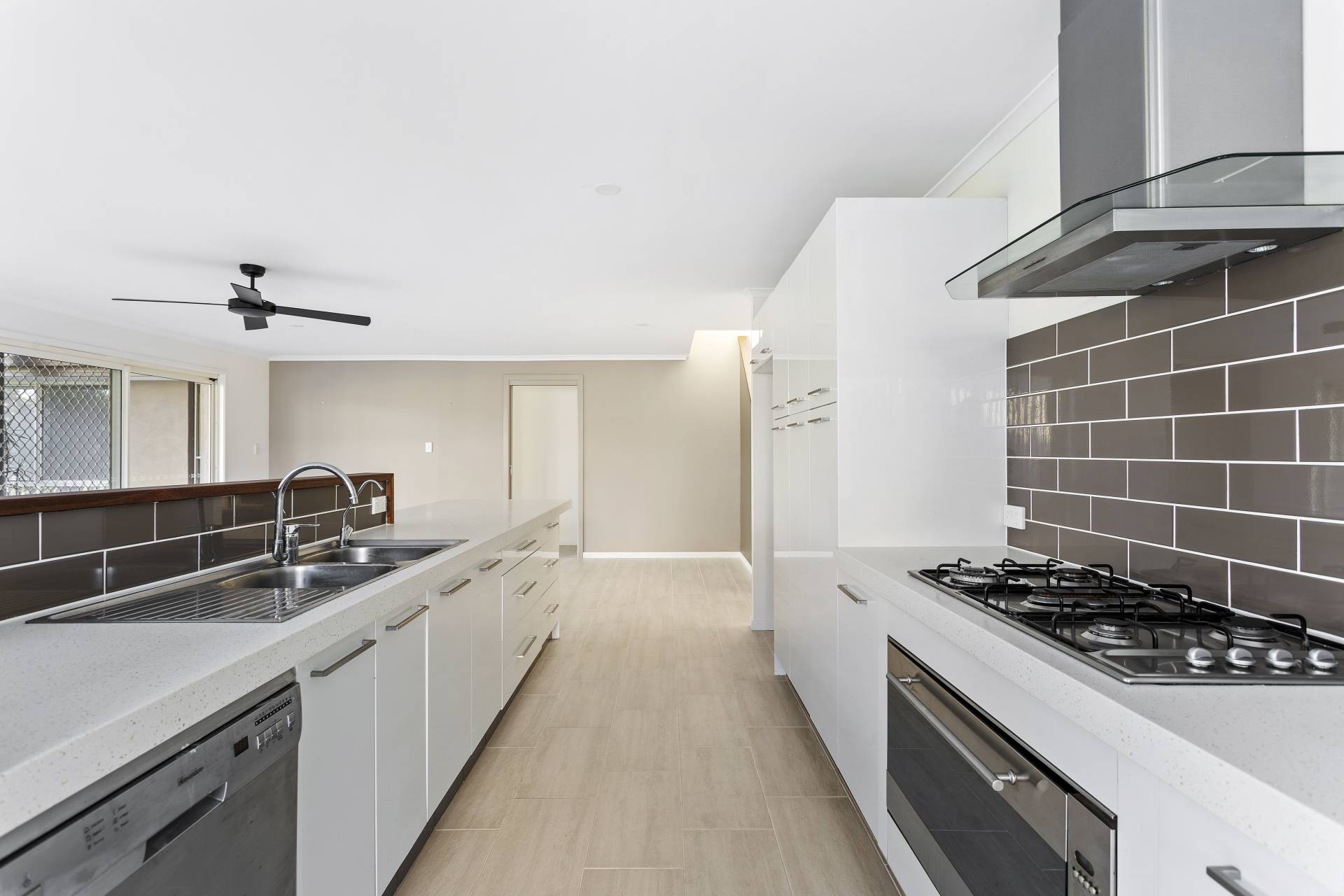 • Gourmet kitchen with stone benchtops, gas cooktop, dishwasher and plenty of storage.