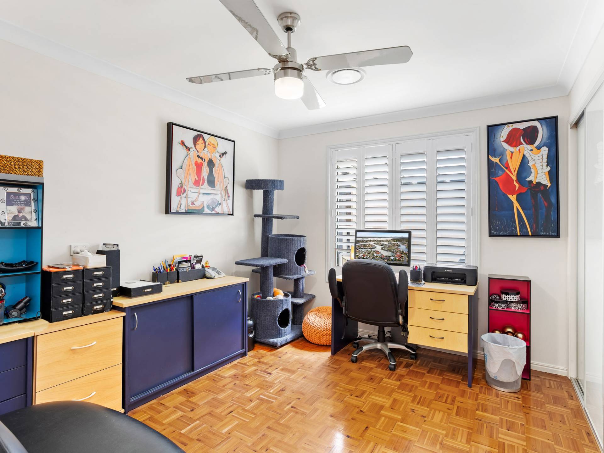 The current owners have masterfully converted one of the garage spaces (there are two separate single garages) to operate their home business. This is a multi-purpose room where you could use this space as a home office, a guest retreat or easily convert back to garaging to park two vehicles securely.