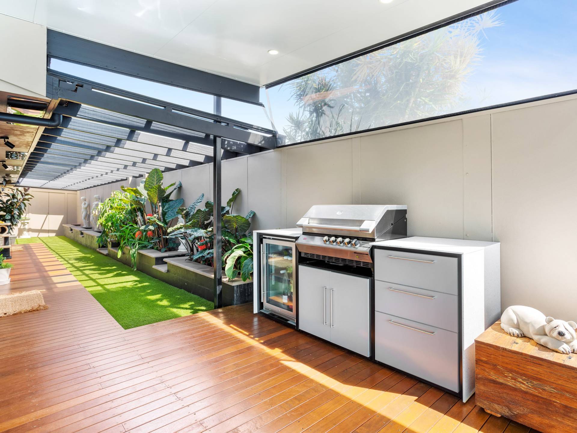 Invite the outdoors in by sliding back the wall of glass doors to incorporate the generous alfresco and enjoy every day on the timber entertainer’s deck whilst basking in the 8m x 3m solar heated sun-kissed lap pool.  A BBQ, outdoor fridge and electric shade blinds complete the outdoor entertaining space.